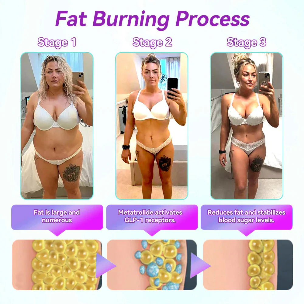 Meglutide. combined withย apple cider vinegar and the powerful Moringa extract. helps the body utilize fat stores more effectively for energy. By improving insulin sensitivity. it accelerates fat burning. especially during calorie restriction or increased physical activity. The apple cider vinegar works to stabilize blood sugar levels. preventing excess glucose from being stored as fat.